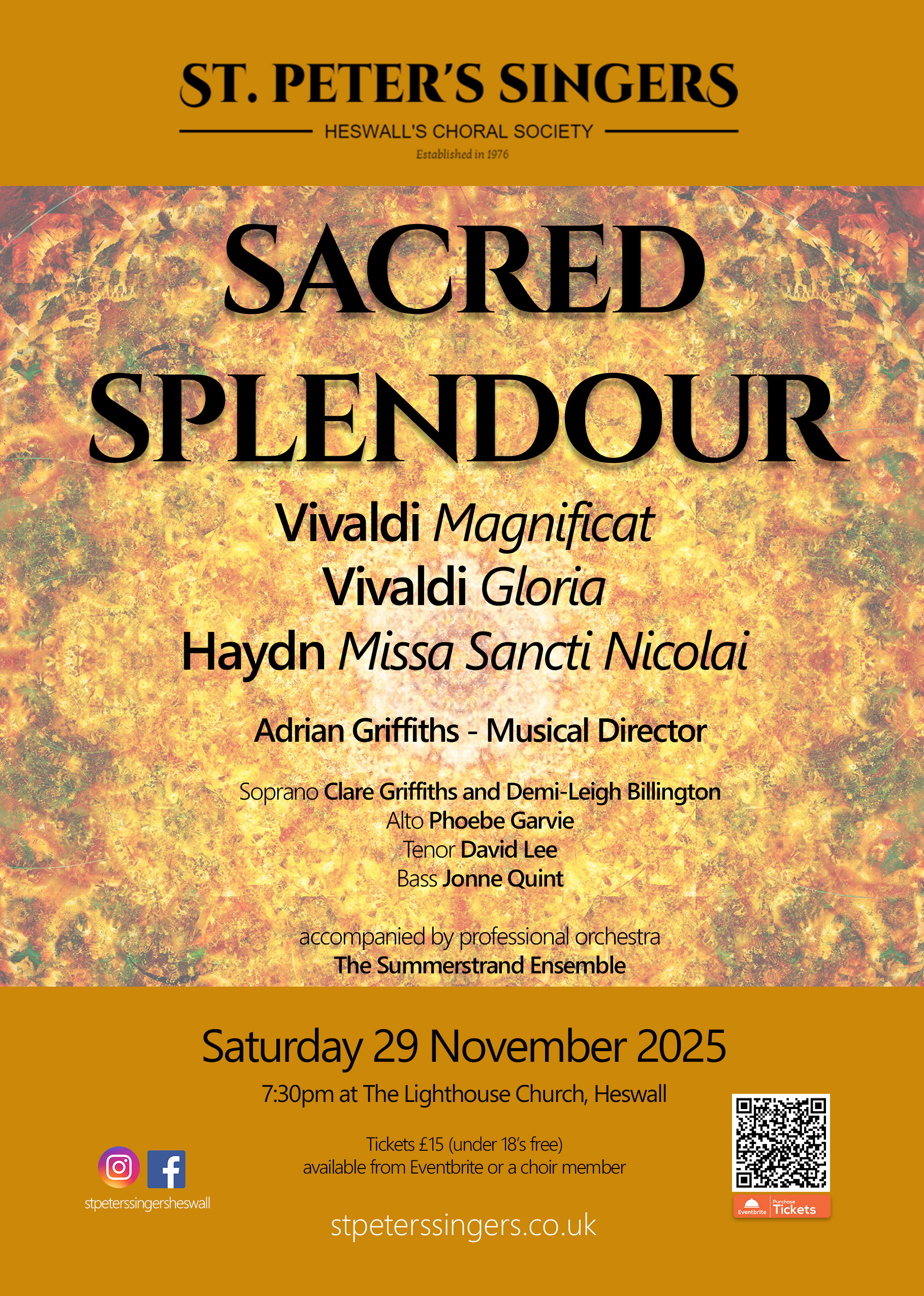As a member of St. Peter’s Singers choir, I contribute both on stage and behind the scenes. I designed the choir’s website (see above) and create all promotional materials, including concert flyers, tickets and event programmes. I also manage the publicity on social media, crafting engaging posts for Instagram and Facebook to promote our events and performances